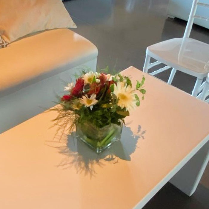 Centro de Mesa – Florero cuadrado con flores de estación